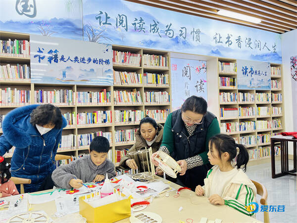 河新社區(qū)城市書(shū)房?jī)?nèi),孩子們圍坐在桌前專注制作非遺手作。
